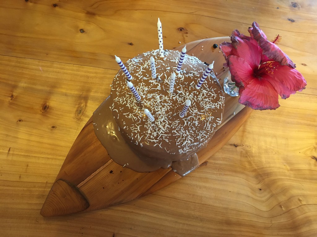 When Kristel did the same cake a couple of weeks ago, for some reason it didn’t rise and we ended up with super tasty but a rather small cake. So she asked me to double the ingredients to make it bigger (and to look more like a birthday cake). And I did. This time, however, the cake rose so we ended up with this humongous cake!